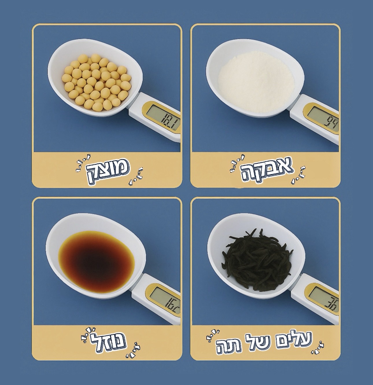 הכף שוקלת כל דבר – סוכר, שמן, תה, רטבים או קמח – עם דיוק של 0.1 גרם.
